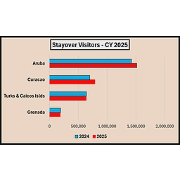 - Stopover visitors to The Bahamas reached 1.61 million in 2023, up 13.5% from 2022.